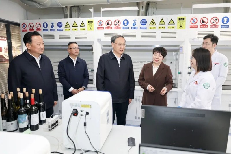 李邑飞在自治区食品检测研究院,了解葡萄酒检验检测情况。